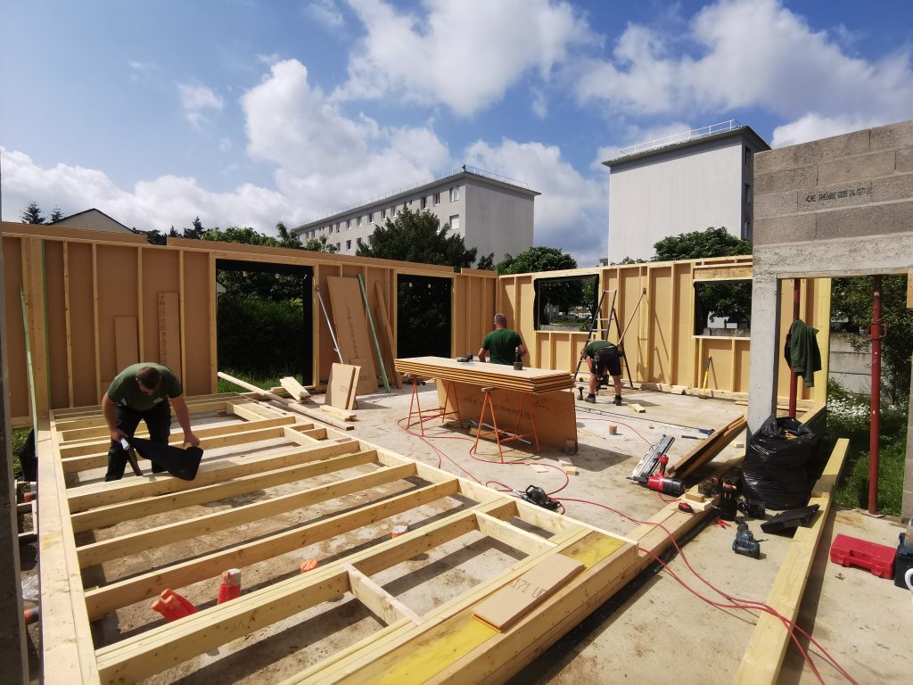 Fabrication sur site ou dans nos ateliers des structures bois en hors d’eau, hors d’air ( HEHA ) et le second oeuvre en tout corps d’état ( TCE ).